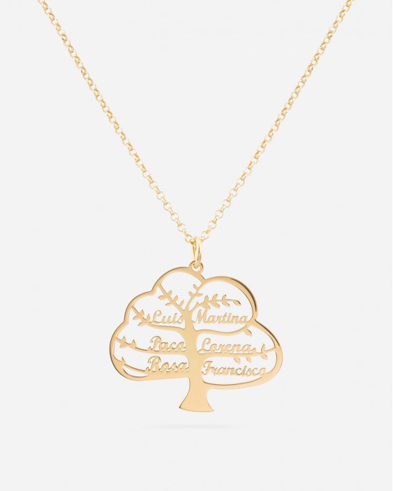 Este collar arbol de la vida en Plata de Ley bañado en Oro es la manera perfecta de llevar contigo a tus seres queridos. Personaliza este símbolo de crecimiento y familia con hasta 7 nombres grabados en sus ramas. Un accesorio que te conecta con tus raíces y te recuerda el amor que te rodea.