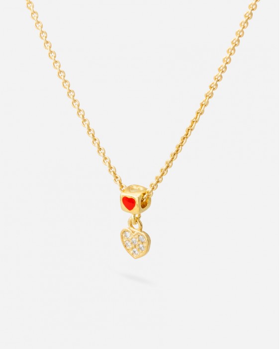 El collar "Julié Coure" en plata de ley bañada en oro es una joya que emana elegancia y dulzura. Su diseño refinado destaca con un encanto corazón con piedras engastadas. La cadena ajustable proporciona versatilidad y comodidad, creando una pieza única que fusiona la sofisticación del metal precioso con un estilo distintivo y atemporal.