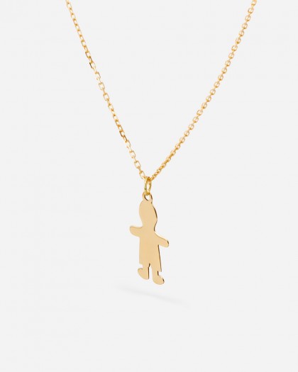 "Exquisito collar de oro 18kt con colgante en forma de niño, ofrece personalización con nombre, fecha o inicial. La cadena forzada garantiza comodidad. Un regalo precioso para mamás y abuelas, capturando momentos especiales con elegancia y estilo. Celebra el amor familiar con esta joya única y significativa."
