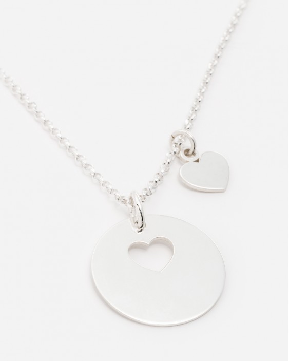 El collar en plata de ley con un corazón calado es más que una joya, es una expresión de amor personalizada. La medalla se adapta a tus sentimientos con la opción de personalización, mientras un adorable corazón cuelga juguetonamente de la cadena ajustable. Perfecto para todas las edades, es un tesoro encantador.