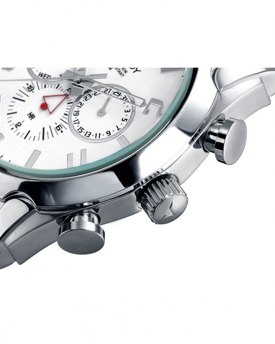 El reloj presenta una estética clásica y atemporal. Su caja de acero proporciona durabilidad y elegancia, mientras que la esfera blanca con números arábigos ofrece una fácil lectura y un estilo tradicional. La correa de piel marrón oscuro añade un toque de sofisticación y calidez, complementando perfectamente el conjunto. Este reloj es una opción ideal para aquellos que aprecian la simplicidad y la elegancia en un accesorio de calidad.