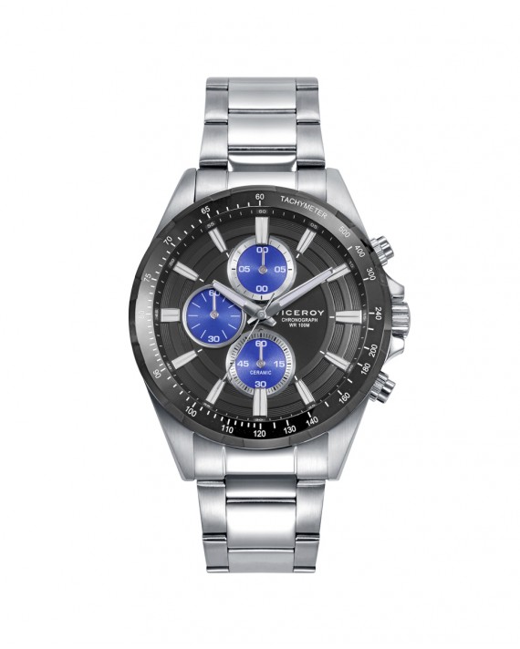 Reloj deportivo para hombre con cronógrafo, caja y esfera negra, con agujas plateadas y contadores azules a las 6, 9 y 12. Una combinación perfecta de versatilidad y estilo, para hombres que no se conforman con cualquier cosa. Consigue tus mejores looks con este reloj exclusivo de Viceroy.