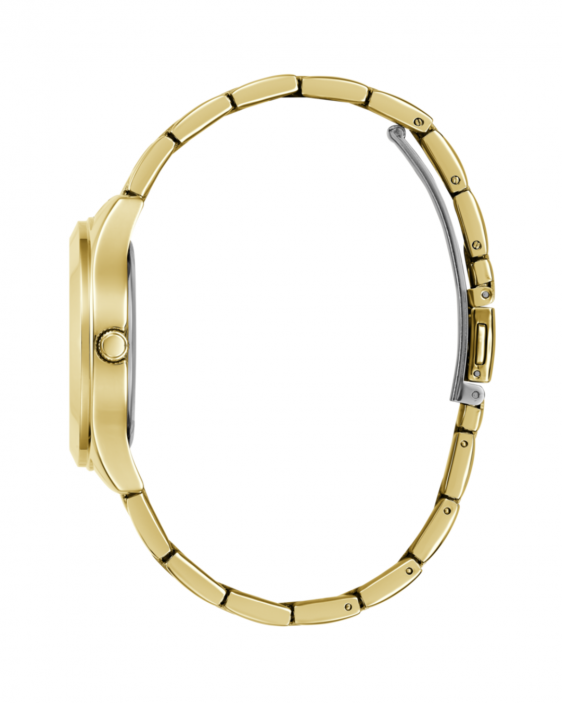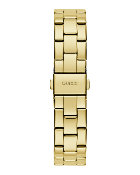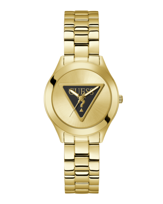 Descubre el Reloj GUESS GW0675L2 Tri Plaque, una pieza elegante y sofisticada diseñada especialmente para mujer. Este reloj analógico combina estilo y funcionalidad con su caja redonda de 34 mm en acero inoxidable dorado de acabado pulido y su brazalete metálico a juego, creando un accesorio ideal para cualquier ocasión.