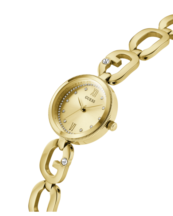 Con movimiento de cuarzo de alta precisión y un brazalete con eslabones “G” autoajustables de fácil adaptación, este reloj combina funcionalidad con un diseño refinado. Su resistencia al agua de 3 ATM lo hace ideal para salpicaduras y uso cotidiano.