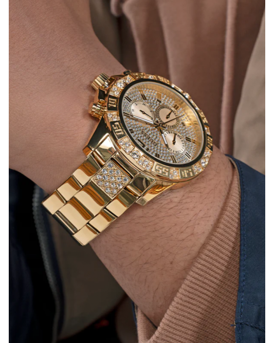 Descubre el Reloj GUESS Majestic, una pieza que combina elegancia y funcionalidad con un diseño sofisticado ideal para el hombre moderno. Su acabado en acero inoxidable dorado de alta calidad y su caja de 48 mm de diámetro lo convierten en un accesorio destacado en cualquier ocasión. La esfera champán con detalles brillantes y cristales engastados aporta un toque de lujo distintivo, mientras que la funcionalidad multifunción ofrece comodidad y precisión diaria.