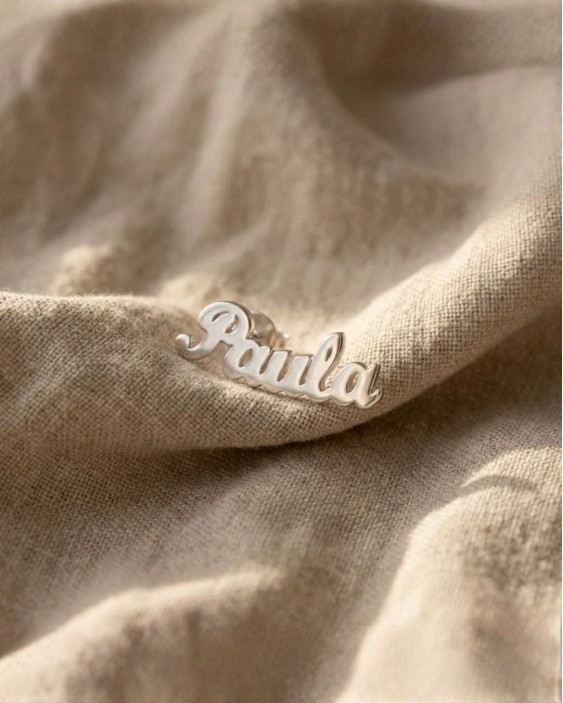 Nuestro pendiente con nombre personalizado en plata de ley 925 está diseñado y fabricado de manera artesanal en España por Doble Aro, joyeros con experiencia en la creación de joyas únicas y personales.