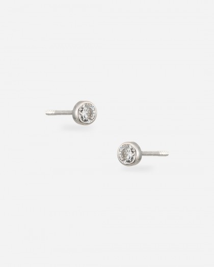 Estos elegantes pendientes de oro de 18kt cuentan con una hermosa circonita en el centro y un seguro cierre de rosca. Son ideales para niñas o chicas jóvenes que buscan un accesorio clásico pero con un toque de brillo. El oro de alta calidad asegura durabilidad y brillo duradero.