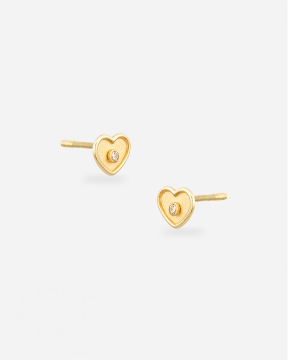 Estos son unos pendientes muy lindos hechos de oro de 18 quilates con la forma de un corazón y una circonita. Se sujetan a las orejas con un cierre de rosca que es seguro y fácil de usar. Pueden ser usados por cualquier persona, desde niños hasta adultos.