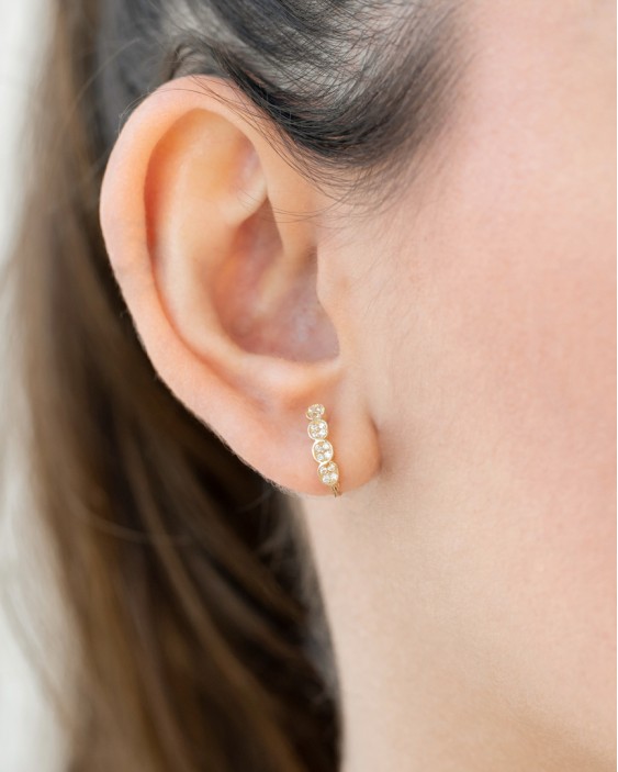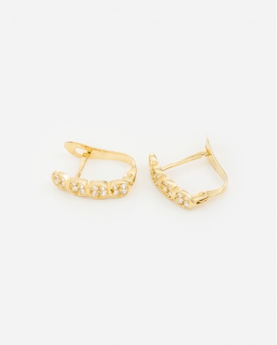 Los pendientes Elise son tan brillantes que te harán parecer una estrella de cine! Hechos en oro de 18kt, con circonitas de alta calidad y cierre catalán para mayor seguridad, estos pendientes son perfectos para cualquier edad. ¡Ponte tus mejores zapatos y deja que los pendientes Elise sean tu pieza central en la alfombra roja!