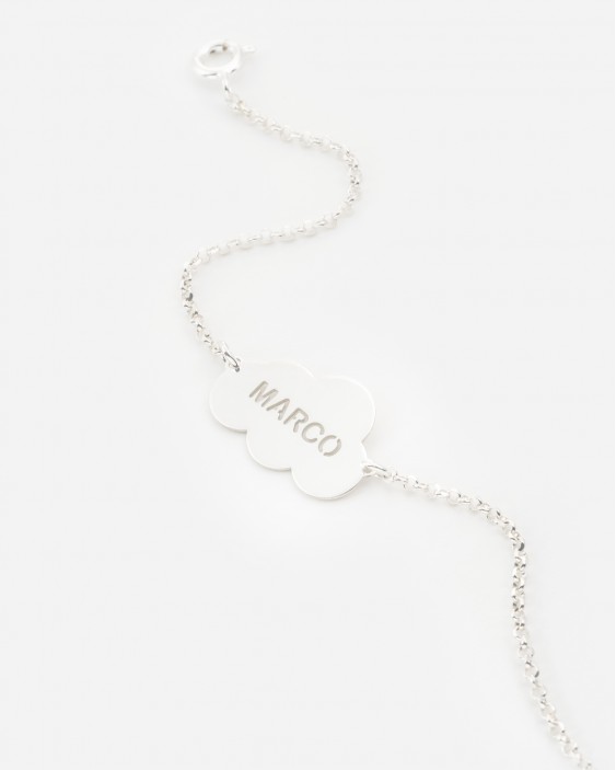 ¡Esta pulsera de plata de ley con forma de nube y nombre personalizado es un accesorio mágico que cualquier chica joven adorará! Con un diseño ajustable que se adapta a cualquier muñeca, esta pulsera de ensueño es la combinación perfecta de elegancia y fantasía. Agrega tu nombre y deja que la nube te lleve a nuevos horizontes.