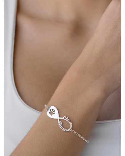 Pulsera con 2 nombres Infinito Mascota Plata